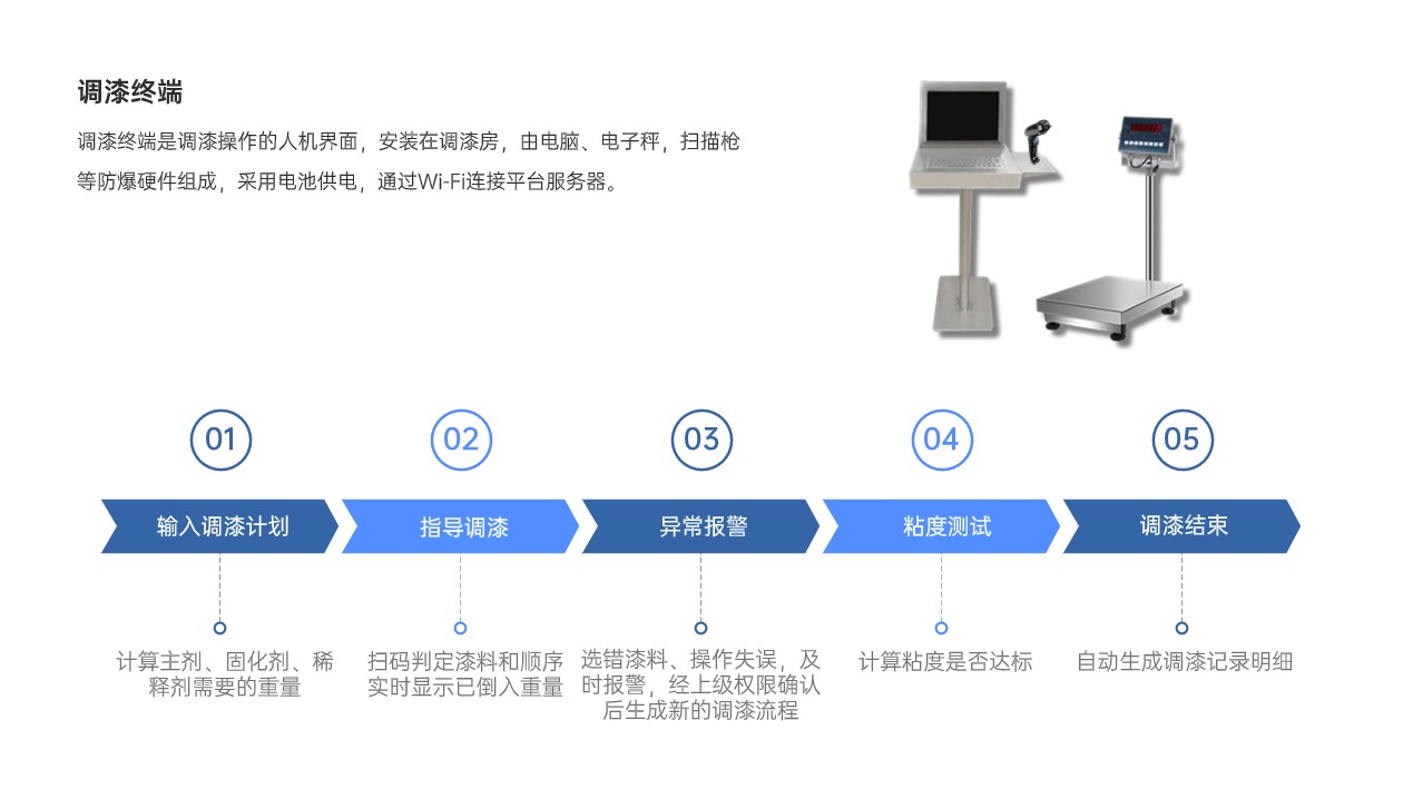 4、漆料、涂料制漆廠,油漆生產(chǎn)調(diào)和環(huán)節(jié)的漆料調(diào)和管控。
