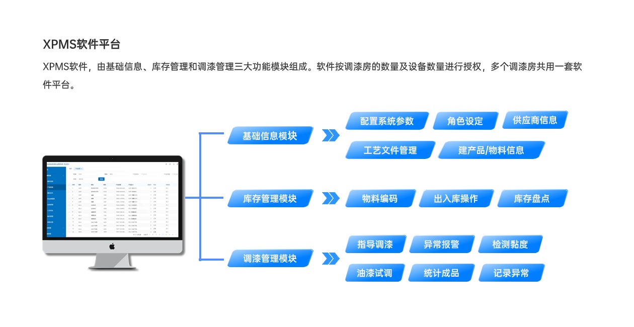 信立調(diào)漆管控系統(tǒng)XPMS,應(yīng)用工業(yè)物聯(lián)網(wǎng)技術(shù)、數(shù)據(jù)庫及智能化平臺(tái)軟件,標(biāo)準(zhǔn)、規(guī)范、指導(dǎo)、監(jiān)管調(diào)漆過程,實(shí)現(xiàn)調(diào)漆操作智能化、簡(jiǎn)單化,有效提升調(diào)漆質(zhì)量、減少漆料浪費(fèi),降低人為因素風(fēng)險(xiǎn),是一套智能化的調(diào)漆、制漆管控系統(tǒng)。
