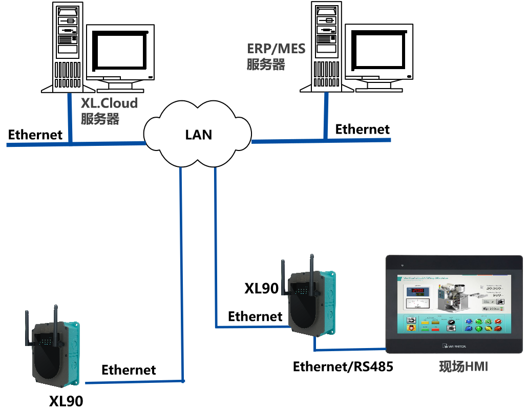 XL90物聯(lián)網(wǎng)關(guān),可將數(shù)據(jù)接入私有云服務器,或公有云服務器,支持oneNET、AWS、Azure,以及及百度、阿里、騰訊,及其它公有云平臺