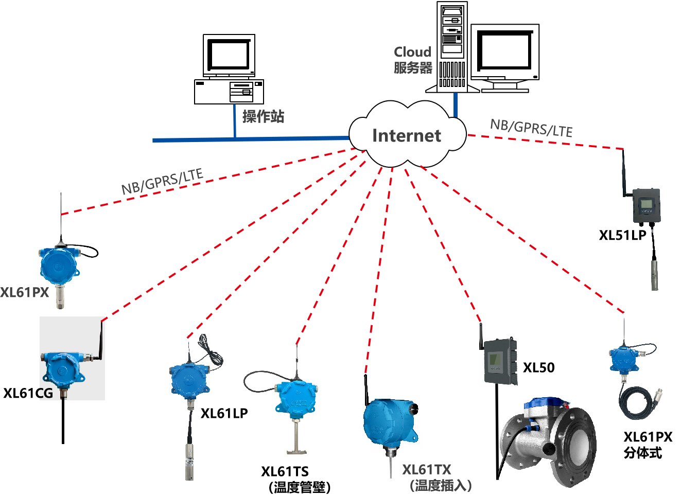 XL90,將數(shù)據(jù)上傳給企業(yè)內(nèi)部的多個系統(tǒng)軟件平臺;通過LTE(4g)/NB/GPRS將數(shù)據(jù)上傳至云服務器