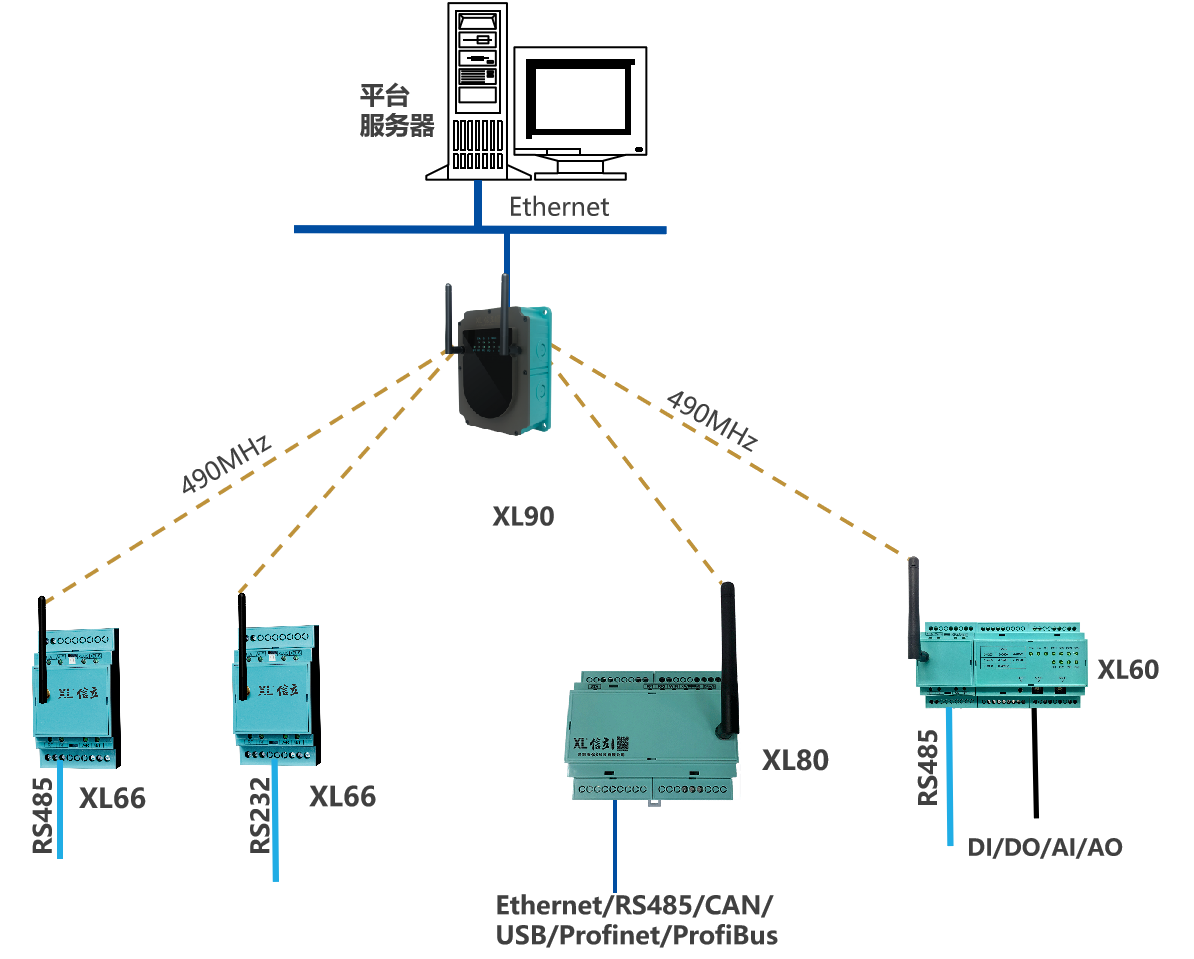 XL80智能主機(jī), Ethernet、CAN、USB、Profibus、 Profinet、RS485等接口,讀取數(shù)據(jù),LoRa通信(490MHz)