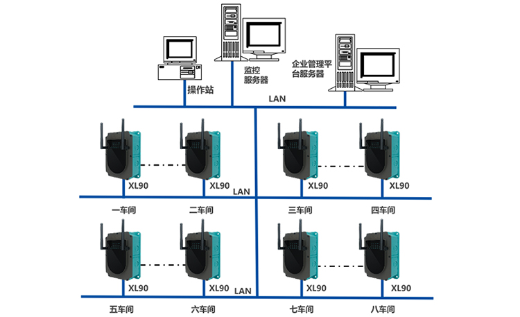 通信網(wǎng)絡(luò)由XL90物聯(lián)網(wǎng)關(guān)及企業(yè)LAN構(gòu)成;