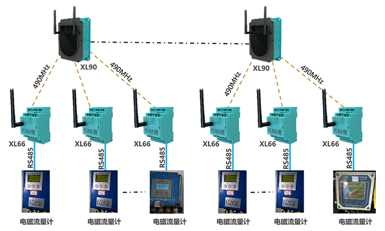 每個(gè)監(jiān)測(cè)點(diǎn)配置1臺(tái)XL66智能轉(zhuǎn)換器,從已安裝的電磁流量計(jì)讀取流量數(shù)據(jù)上傳至XL90物聯(lián)網(wǎng)關(guān);