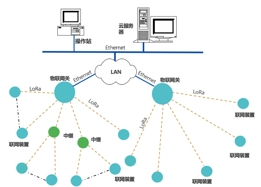 聯(lián)網(wǎng)裝置,采集設備運行數(shù)據(jù),通過LoRa上傳數(shù)據(jù)至物聯(lián)網(wǎng)關,網(wǎng)關通過Ethernet或Wi-Fi,接入云平服務器;