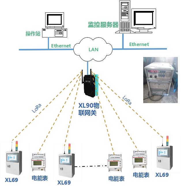 XL69無線采集終端安裝、固定在電焊機上;配互感器等信號采集、輸入模塊,參數(shù)按焊機技術參數(shù)配。