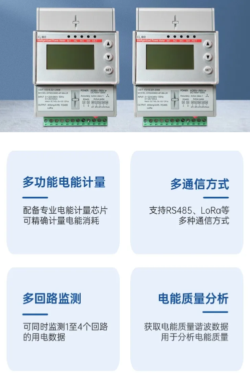 選擇DTSD3366XL無(wú)線(xiàn)多功能電表,監(jiān)測(cè)各節(jié)點(diǎn)用電能耗情況。